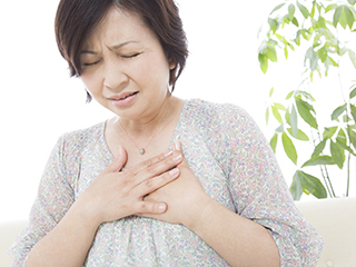 心臓に酸素を送る冠動脈が動脈硬化などによって狭窄を起こし、心臓の筋肉の収縮に必要な血液(酸素)を送りきれないため、酸素不足をきたして胸痛などの症状を起こす病気が狭心症です。狭窄ではなく閉塞によって途絶するのが心筋梗塞です。50~60歳代に多いですが、40歳代にも見られます。男性に多い疾患です。